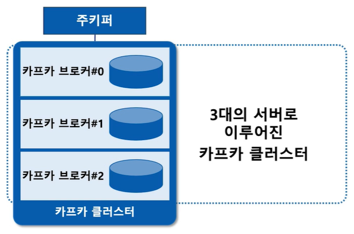 리더 파티션의 위치가 Round-Robin 방식으로 적절히 분배되기 때문에 프로듀서, 컨슈머가 클러스터와 통신을 할 때 네트워크 비용이 각 서버(브로커)에 분산된다는 장점이 있습니다. 앞단에 로드 밸런서를 놓는 방식이 아니라 컨슈머, 프로듀서가 직접 분산해서 통신하는 것입니다.