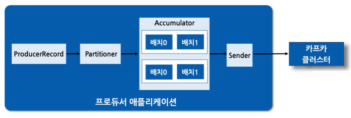 ** Partitioner가 파티션을 지정한 후 Accumulator는 최대한 배치로 데이터를 모으고 나서 Sender는 데이터를 클러스터로 발송