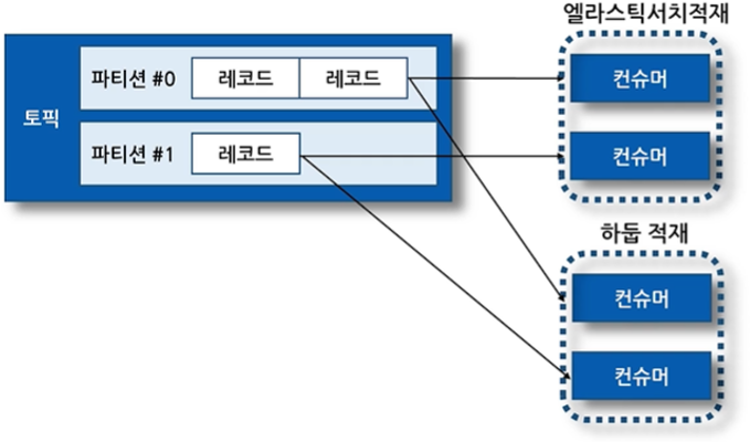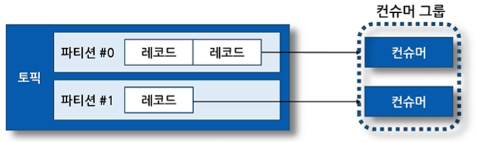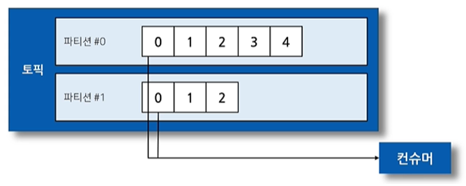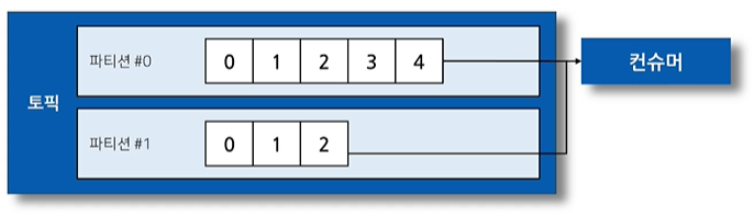 . 컨슈머는 파티션#0의 5번 오프셋 레코드, 파티션#1의 3번 오프셋 레코드 부터 가져감