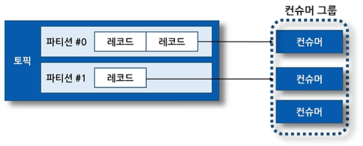 컨슈머 그룹은 아래와 같이 어떤 특정 토픽에 대해 데이터를 병렬 처리할 수 있습니다.