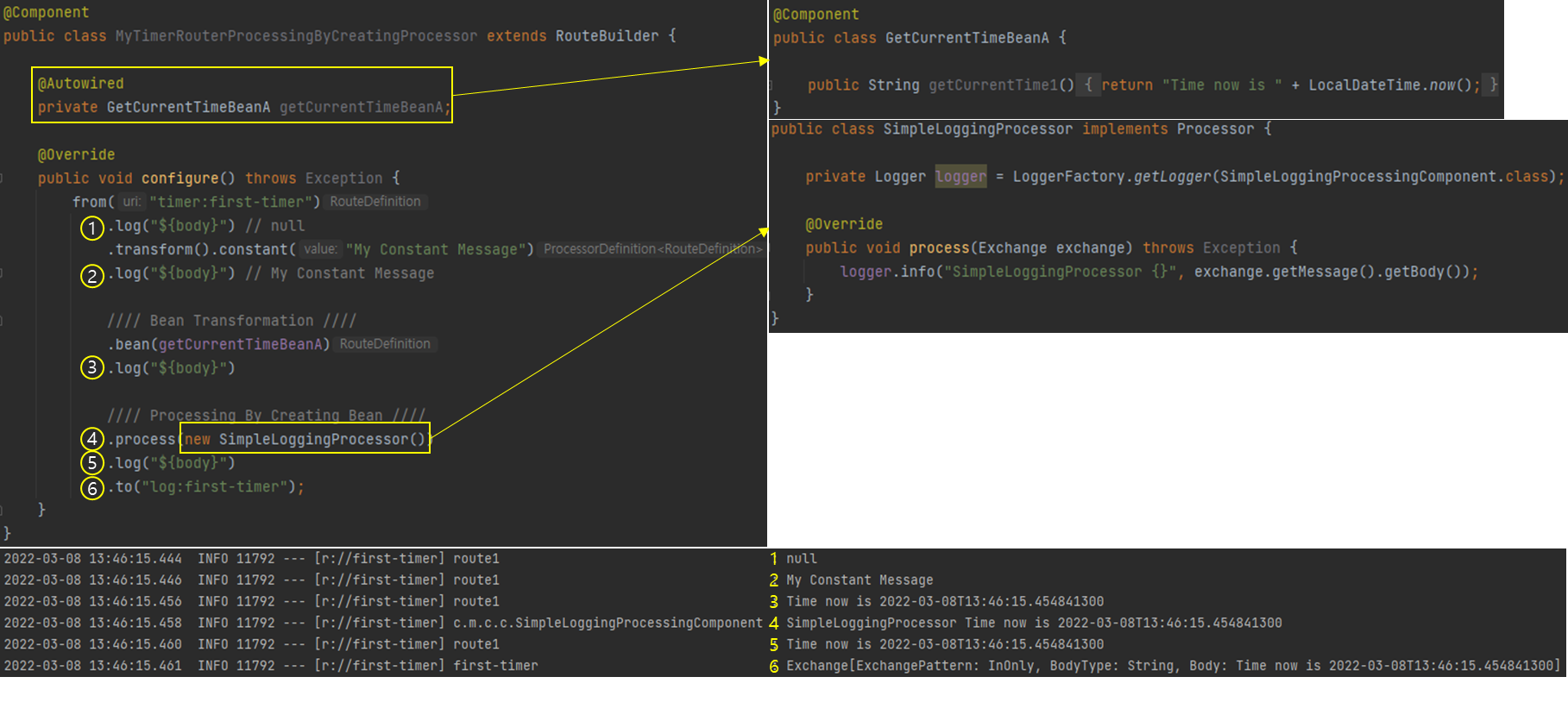 from("direct:insert").log("Processing message ").setHeader("message", body()).process(